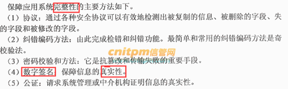 网络安全包含了网络信息的可用性、保密性、完整性和真实性。防范Dos攻击是提高(1)的措施,数字签名是保证(2)的措施。