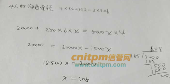 某软件的工作量是20000行,由4人组成的开发小组开发,每个程序员的生成效率是5000行/人月,每队程序员的沟通成本是250行/人月,则该软件需要开发( )月。