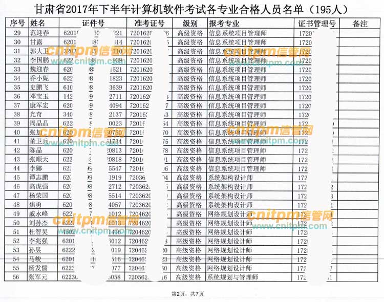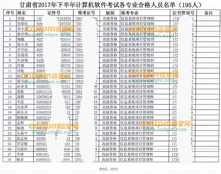 根据JRS直播从甘肃人事考试部门获得的相关信息,甘肃2017下半年软考高级信息系统项目管理师合格人员合计44人,以下为甘肃2017下半年信息系统项目管理师合格人员名单,请以下信息系统项目管理师合格人员按下面链接说明领取证书。