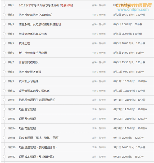 试听课程:2018年下半年信息系统项目管理师考试介绍与考情分析