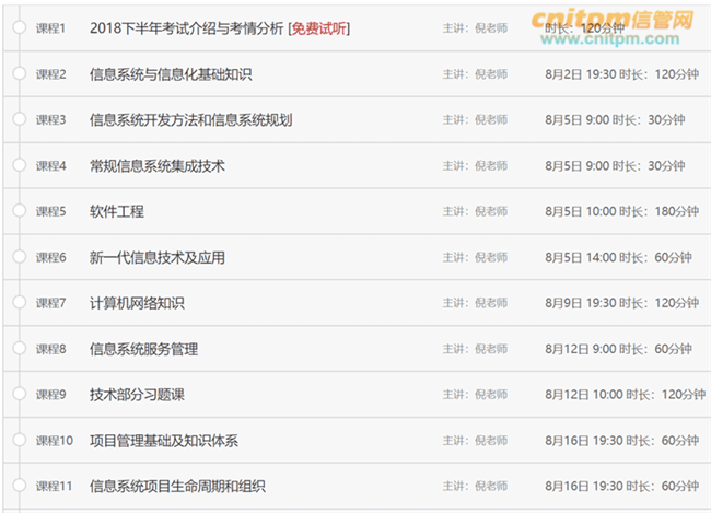 试听课程:2018年下半年系统集成项目管理工程师考试介绍与考情分析