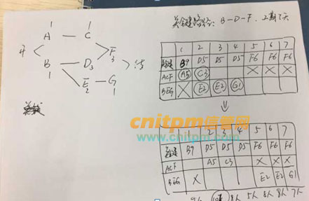 bdf 是关键路径 肯定b要先开始,b先开始 需要9个人 肯定不能和a并行,并行人就用的多了。b完了,a才开始5个人 d的位置和用人不用变 所以加一起10个人 e和g往后推