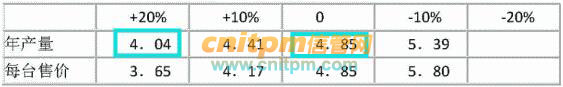 某企业有一投资方案,每天生产某种设备1500台,生成成本每台700元,预计售价每台1800元,估算投资额为800万元,该投资方案寿命为7年,假设年产量,每台售价和投资额均有可能在+-20%的范围内变动,就这三个不确定因素对投资回收期的敏感性分析得到了下表中的部分投资回收期数据(空缺部分尚未计算),根据投资回收期的计算结果可知,这三个不确定性因素中,()是高风险因素(可能导致投资风险)