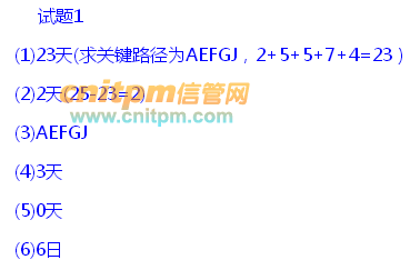 张工按照《1401工作包活动网络图》制订了工作计划,预计总工期为(1)天。按此计划,预留的时间储备是(1)天。该网络目的关键路径是(3) 。按照《1401工作包活动网络图》所示,计算活动C的总时差是(4)天,自由时差是(5)天。正常情况下,张工下达给活动C的开工时间是3月(6)日。