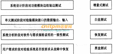 <br>单元测试->组装测试-->确认测试-->系统测试.