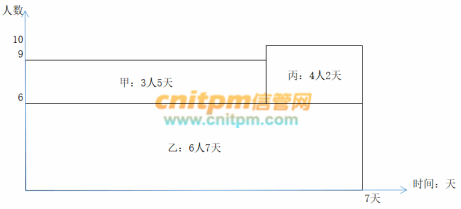 因为甲的三个人 做完之后 可以去做丙 但是丙需要四个人 就需要在加入一个人 @学到凌晨半