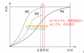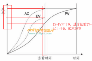 项目经理小张对自己正在做的一个项目进行成本挣值分析后,画出了如下所示的一张图,当前时间为图中的检查日期。根据该图小张分析:该项目进度(1),成本(2)。