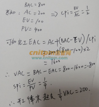 可以算的,VAC算的是整个竣工成本超支,已知SPI=1/4,可以知道项目得做16年,那第三年超支就是3/16*VAC