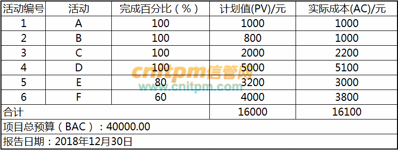 计划值PV=1000+800+2000+5000+3200+4000=16000