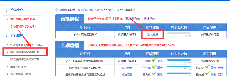 2019年下半年JRS直播信息系统项目管理师和系统集成项目管理工程师直播将于7月18日开课(高级直播课程表 | 中级直播课程表),本次直播直接采用网页直播的方式,不需要下载相关客户端,原则上网页和手机上都可观看,但是考虑到手机网络环境,可能会出现不流畅或延迟长等情况,建议大家使用电脑观看。
