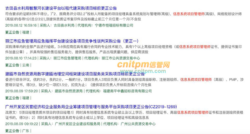 信息系统项目管理师证书作为人事部和工信部共同颁发的国家级高级工程师证书,在部分政府招投标项目中明确注明项目人员需要有信息系统项目管理师证书或者如果有这个证书则投标可以加分。