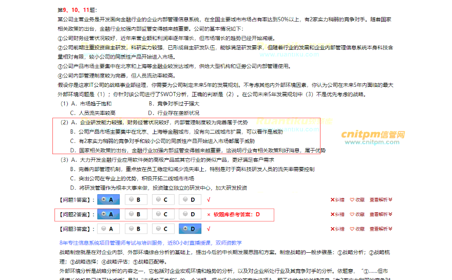 A答案没有体现市场趋于饱和、新竞争者加入等条件,不符合完整的swot分析原则