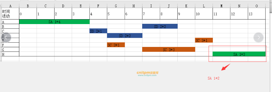 我想到了,我们把sb sd这个忽略了,这两个合在一起是要2天,所以,整个项目完成应该是11+2=13天