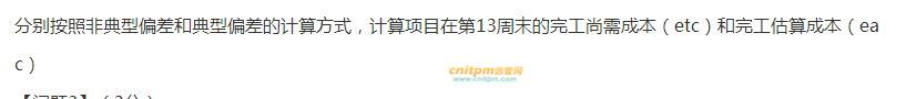 分别按照非典型偏差和典型偏差的计算方式,计算项目在第13周末的完工尚需成本(etc)和完工估算成本(eac)。