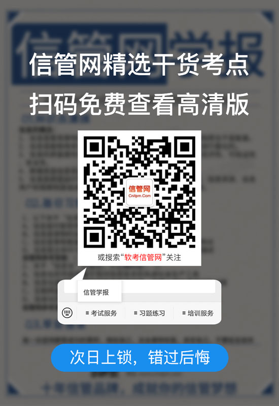 JRS直播学报由专注信管10年的JRS直播编辑整理,精挑细选信息系统项目管理师干货考点,包含知识点集锦和配套习题,只需扫码关注JRS直播微信公众号即可免费查看当日学报。