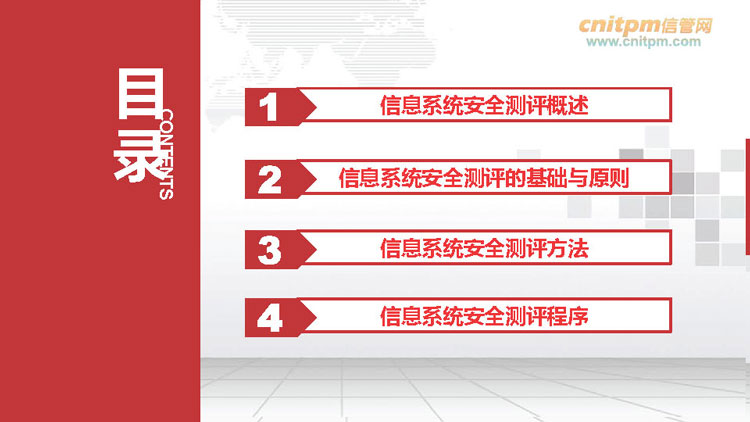 课程内容:信息系统安全测评概述、信息系统安全测评的基础与原则、信息系统安全测评方法、信息系统安全测评程序