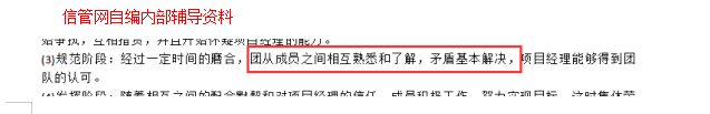 项目团队的规范阶段(Norming)是指:经过一定时间的磨合,团队成员开始协同工作,并调整各自的工作习惯和行为来支持团队,团队成员开始相互信任,项目经理能够得到团队的认可。