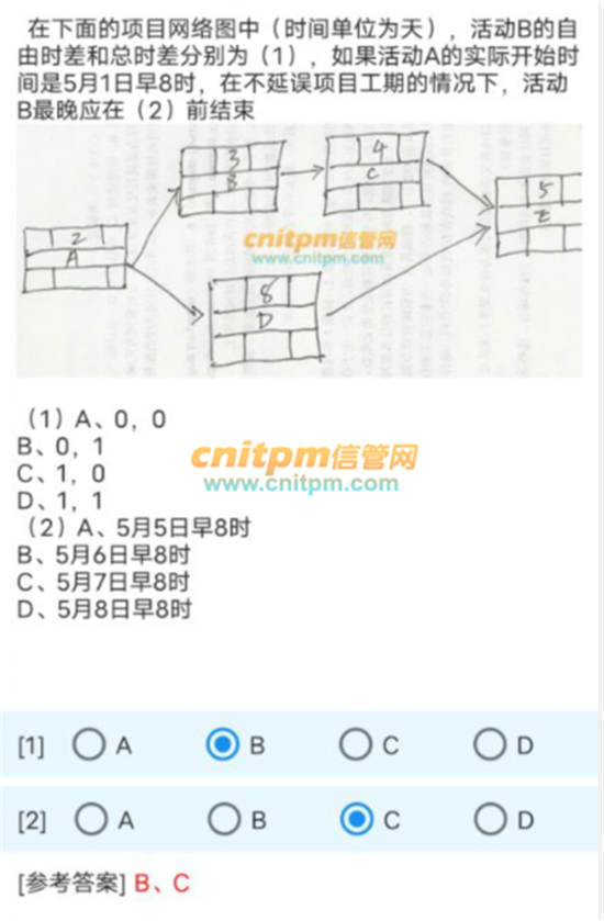 如果这样推算没问题,活动C的自由时差0,总时差1;活动D自由时差0,总时差0,对不对?