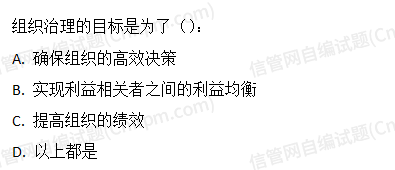 组织治理的目标是为了():A.确保组织的高效决策B.实现利益相关者之间的利益均衡C.提高组织的绩效D - JRS直播