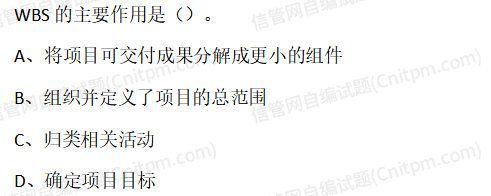WBS的主要作用是()。A.将项目可交付成果分解成更小的组件B.组织并定义了项目的总范围C.归类相关 - JRS直播