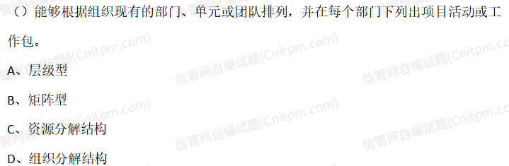()能够根据组织现有的部门、单元或团队排列,并在每个部门下列出项目活动或工作包。A.层级型B.矩阵型 - JRS直播