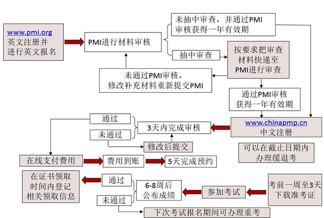 审核通过后进行下一步,中途还有一种是PMP®考试审查,是由PMI®的计算机系统自动抽查,抽查中的考生需要按要求将材料快递至PMI®进行审查,被抽查的几率大约在10%左右。