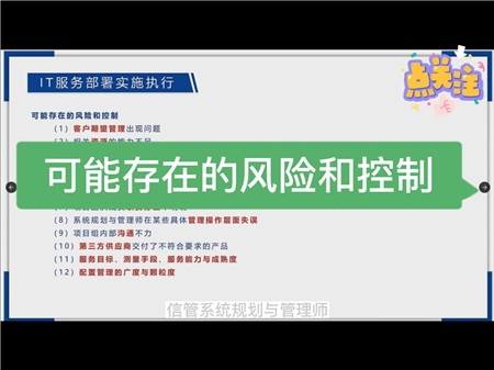系统规划与管理师视频:IT服务部署实施验收中可能存在的风险和控制