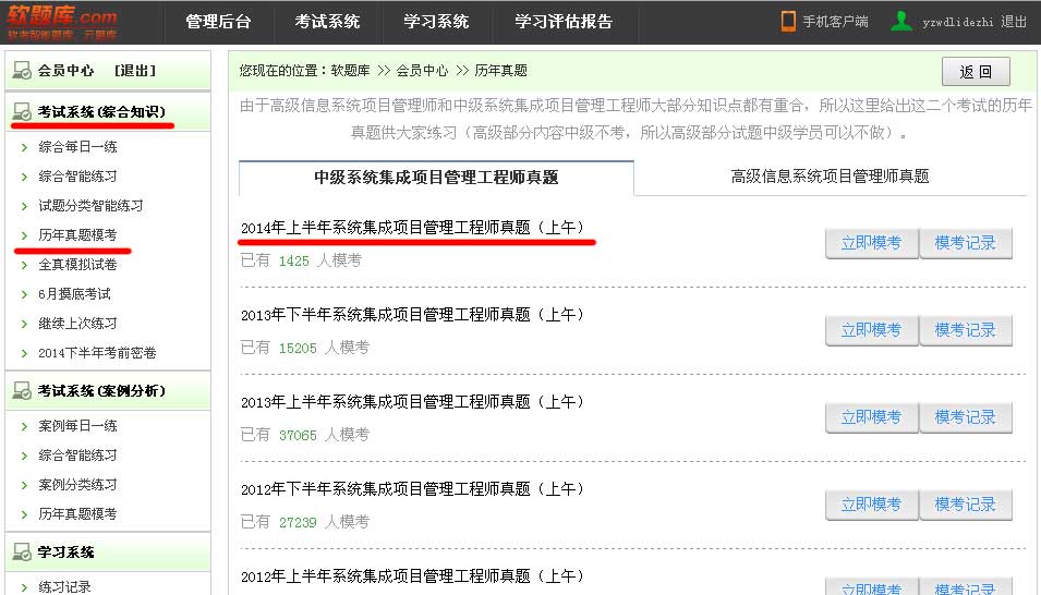 在线估分方式:登录软题库(JRS直播用户可以直接登录)》进入考试系统(综合知识)》点击历年真题模考