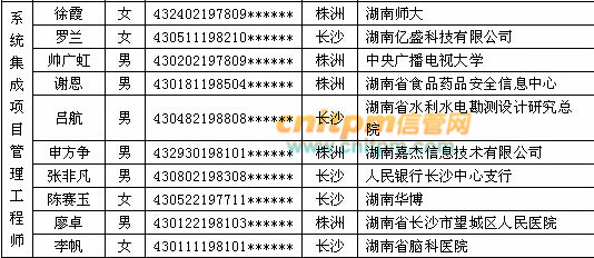 湖南2014上半年中级系统集成项目管理工程师省内前10名名单