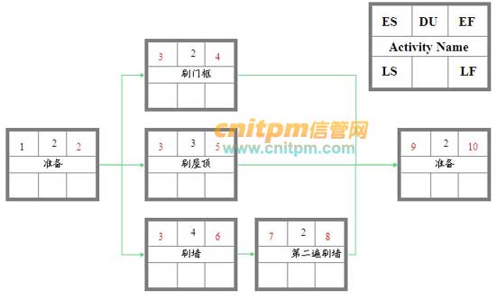 最早开始时间ES:基于网络图的逻辑和约束条件, 一项活动能够开始的最早时间。