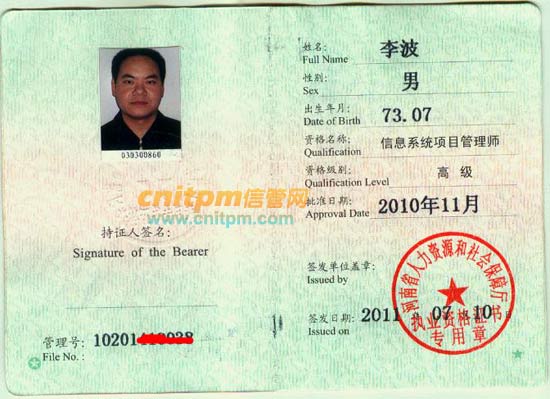 河南省信息系统项目管理师证书样本