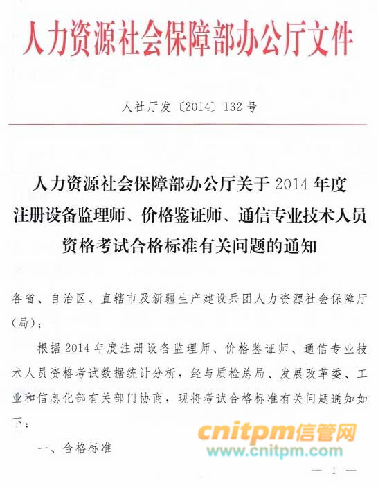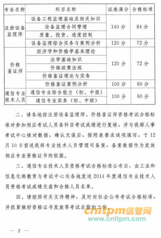 2014年通信专业技术人员初级和中级职业水平考试合格标准文件