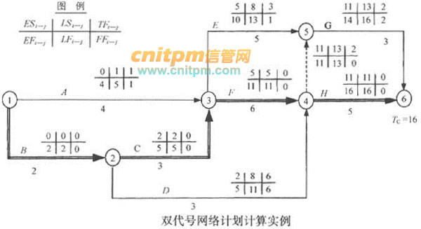 双代号网络计划时间参数的计算方法很多,一般常用的有:按工作计算法和按节点计算法进行计算;在计算方式上又有分析计算法、表上计算法、图上计算法、矩阵计算法和电算法等。