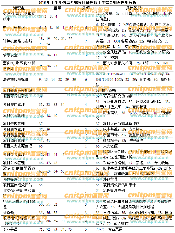 【题型分析】2015上半年(5月)信息系统项目管理师考试题型分析(综合知识、案例分析、论文)