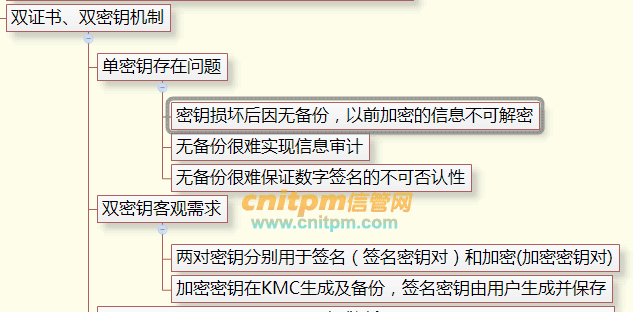 两对密钥(两张证书)的客观需求:一对密钥用于签名(签名密钥对),一对密钥用于加密(加密密钥对)。加密密钥在密钥管理中心生成及备份,签名密钥由用户自行生成并保存。