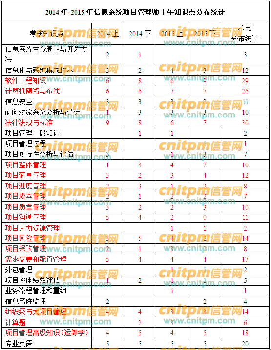 信息系统项目管理师上午知识点分布统计(2014年-2015年)