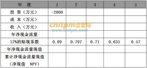 【问题1】 假设系统的使用寿命为五年,企业确定的贴现率为12%,根据上述数据,分析红星集团在想CRM项目的生命期内的现金流量情况,并将有关数据添入表1