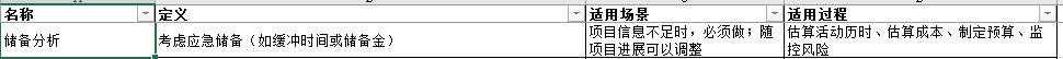成本估算里面是应急储备分析