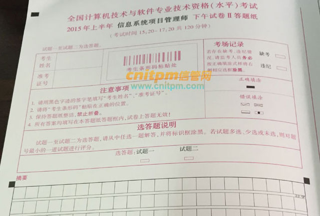 全国计算机技术与软件专业技术资格(水平)考试上午科目(综合知识或基础知识)考生使用答题卡作答,下午科目(案例分析、应用技术或论文)使用答题纸作答,在试卷上答题无效。考生在考试中应注意以下几个问题: