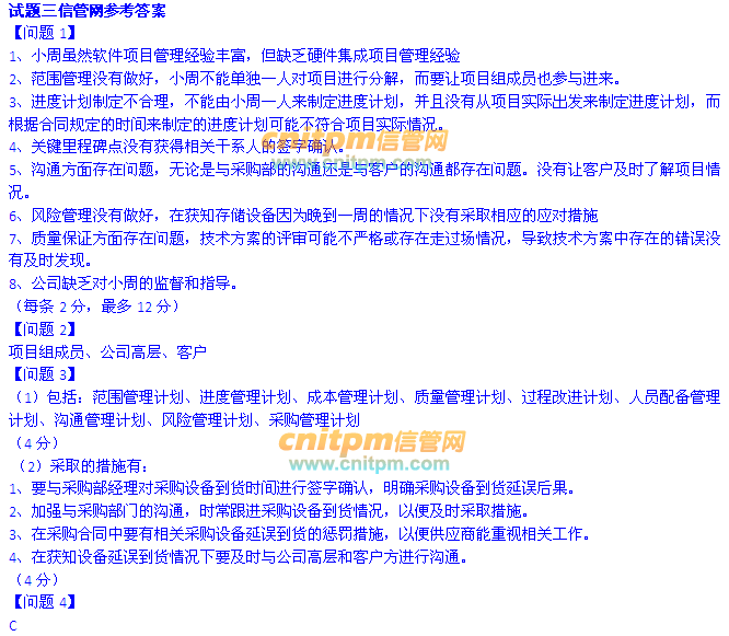 小周担任过多个应用软件开发项目的项目经理,但没有负责过硬件集成项目