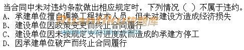 未指定试题:当合同中未对违约条款做出相应规定时,下列情况()不属于违约。A、承建单位擅自调换工程技术
