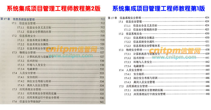 系统集成项目管理工程师第2版第17章与老版教材对比,修改不是很大,只是增加了信息安全登记保护这个知识。