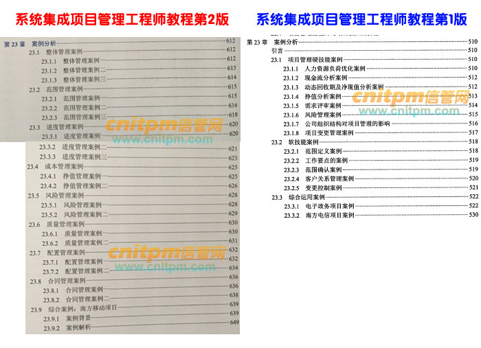 系统集成项目管理工程师第2版第23章与老版教材对比,修改较大,按类对案例进行了分类,增加了案例数量