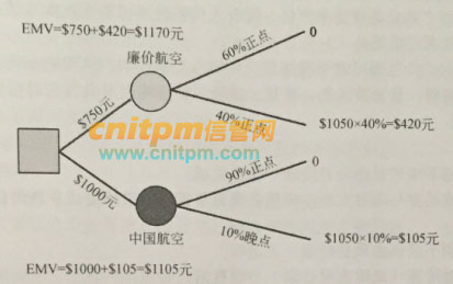 项目经理小明因公定期从北京到巴黎出差,财务部总是告诉他乘坐廉价航空公司的航班以节省费用,廉航从北京至巴黎的航班费用是750美元。但小明更喜欢乘坐中国航空公司的航班,因为该公司服务热情周到、座位宽大、食品可口且种类丰富,中国航空公司从北京到巴黎的航班费用是1000美元。