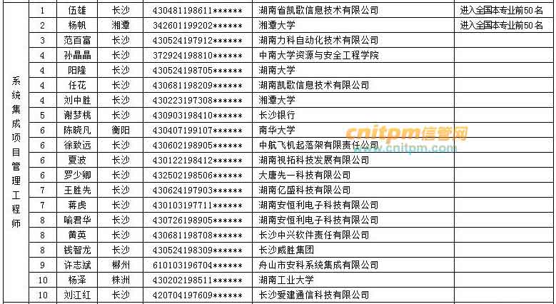 湖南省2013年下半年高级信息系统项目管理师全省前10名名单:https://www.fzyzx.cn/pm/9347.html