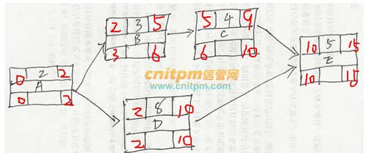 在下面的项目网络图中(时间单位为天),活动B的自由时差和总时差分别为(1),如果活动A的实际开始时间是5月1日早8时,在不延误项目工期的情况下,活动B最晚应在(2)前结束