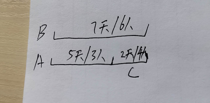很明显能看出来,最短时间是7天,最多同时10人(B6人,C4人)