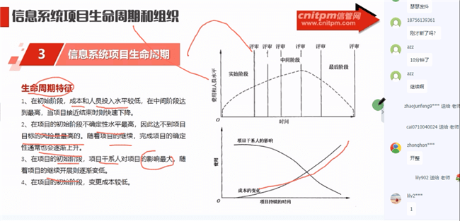 (1)成本与人力投入在开始时较低,在工作执行期间达到最高,并在项目快要结束时迅速回落。这种典型的走势。