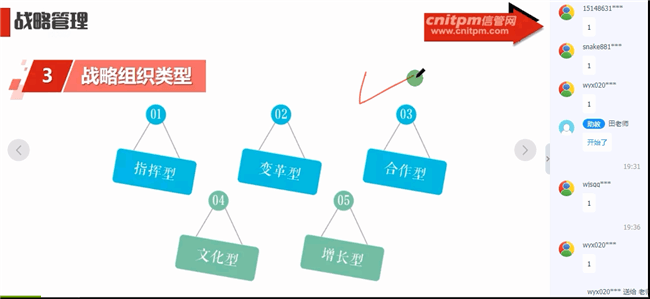 合作型组织战略模式克服了指挥型模式和变革型模式存在的局限性,使组织高层能 够接近一线管理人员,获得比较准确的信息。同时,由于战略的制订是建立在集体参与 基础之上,提高了战略实施成功的概率。该模式的缺点是由于战略是不同观点、不同目 的的参与者相互协商折衷的结果,有可能会使战略的经济合理性有所降低,同时仍然存 在着计划者与执行者之问的区别,仍未能充分调动全体管理人员的积极性。