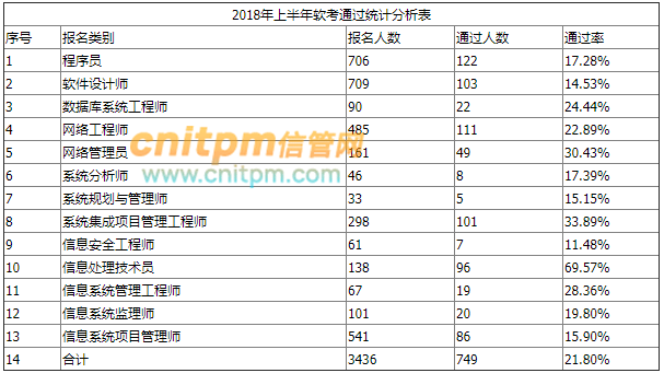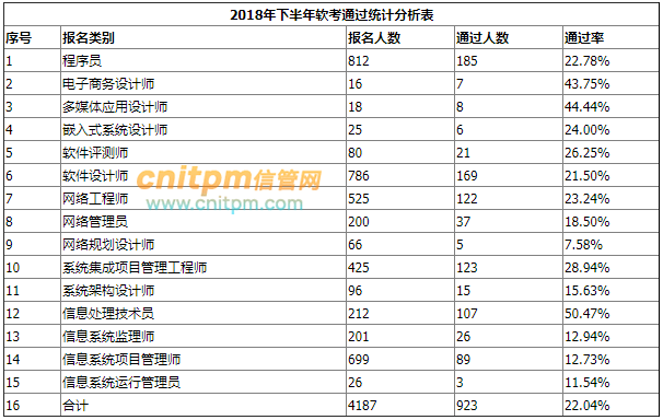 2018年上半年网络工程师报名人数485人,通过人数111人,以报名人数进行计算,通过率22.89%;